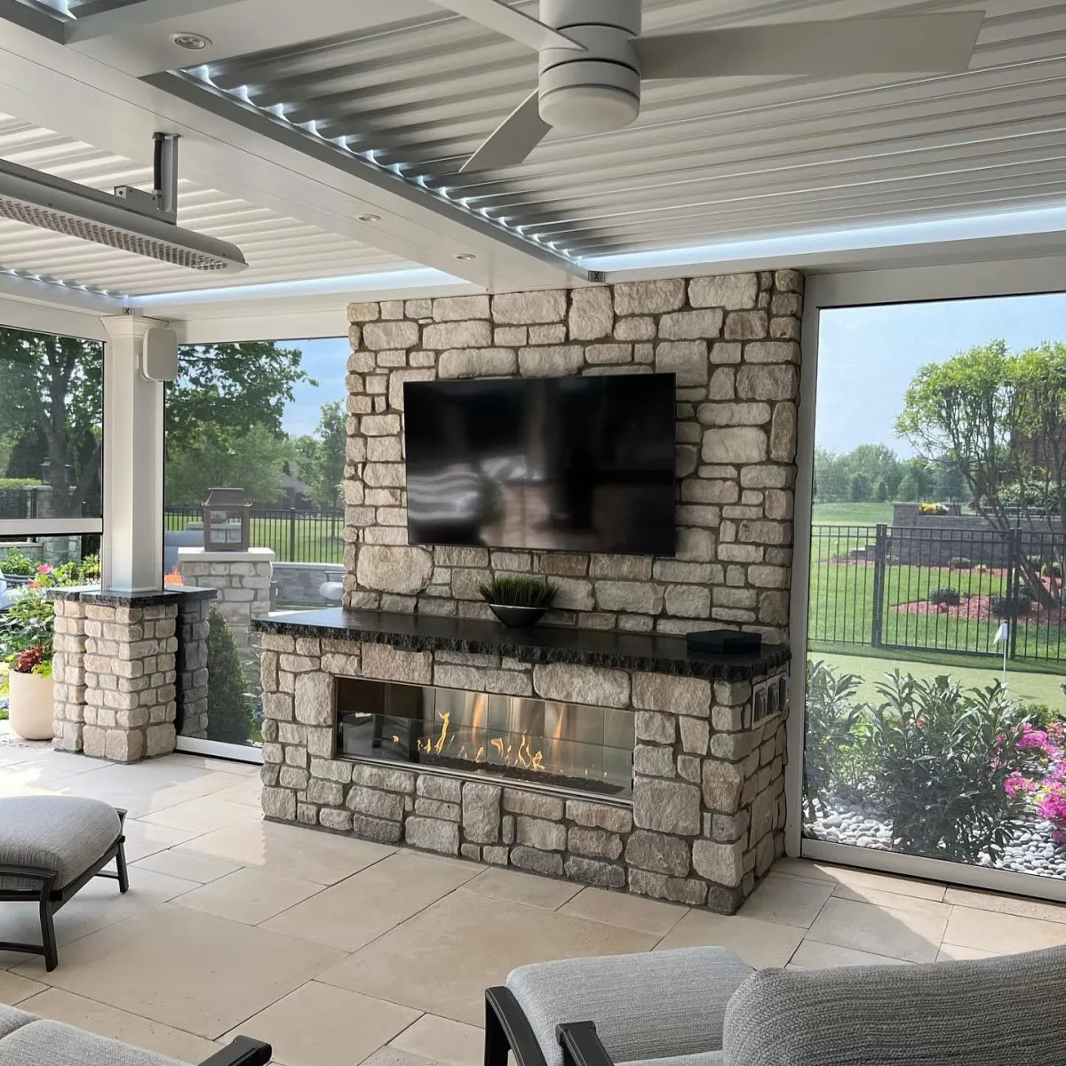 Year Round Comfort: With accessories like heaters and fans, and motorized shades enjoy your outdoor space during the colder months with bromic 6000 watt heaters, or fans to give you a cool breeze in the warmer months, or motorized wall screen shades to keep the bugs out.